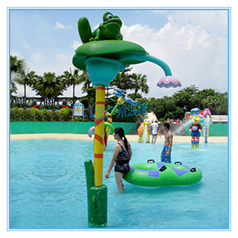 水上樂園設備親子戲水小品荷葉青蛙LT-QWD17068,造型新穎、獨特可愛,外觀吸引人眼球,碧綠的青蛙蹲在綠色的荷葉上,俏皮可愛又渾然一體。真是非常有視覺沖擊力.另外此款戲水設備還巧妙的設計了蓮蓬噴水效果,很得小朋友們的喜歡,玩起來其樂無窮,不禁讓人有感覺置身于卡通世界里的錯覺;非常適合作為兒童親子戲水設備項目!